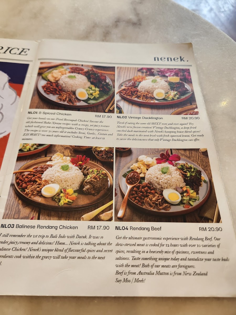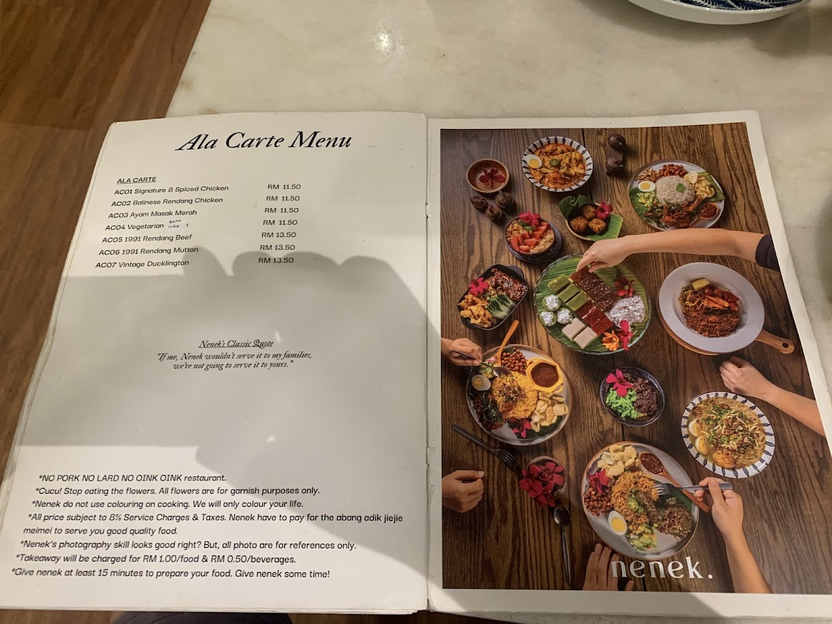 Introducing the Menu at Nenek.